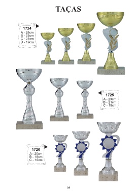 TAÇAS 1724 A - 25cm B - 23cm C - 21cm D - 19cm 1725 A - 23cm B - 21cm C - 19cm 1726 A - 20cm B - 18cm C - 16cm 09