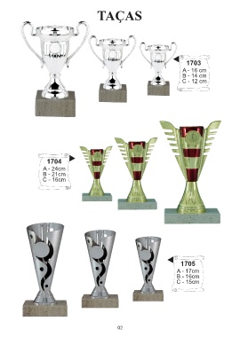 TAÇAS 1703 A - 16 cm B - 14 cm C - 12 cm 1704 A - 24cm B - 21cm C - 16cm 1705 A - 17cm B - 16cm C - 15cm 02